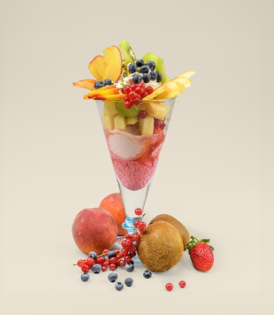 GELATO MISTO, MACEDONIA, PANNA, FARCITO CON FRUTTA FRESCA